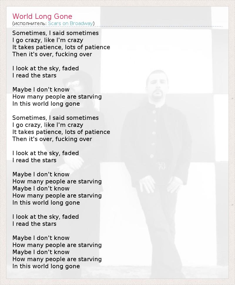 А как ты думаешь, о чем песня "World Long Gone" ?