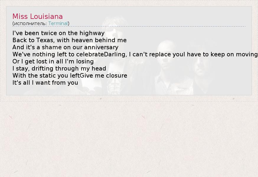 А как ты думаешь, о чем песня "Miss Louisiana" ?