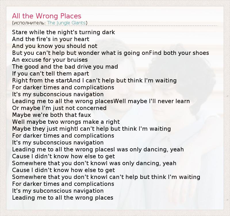 А как ты думаешь, о чем песня "All the Wrong Places" ?