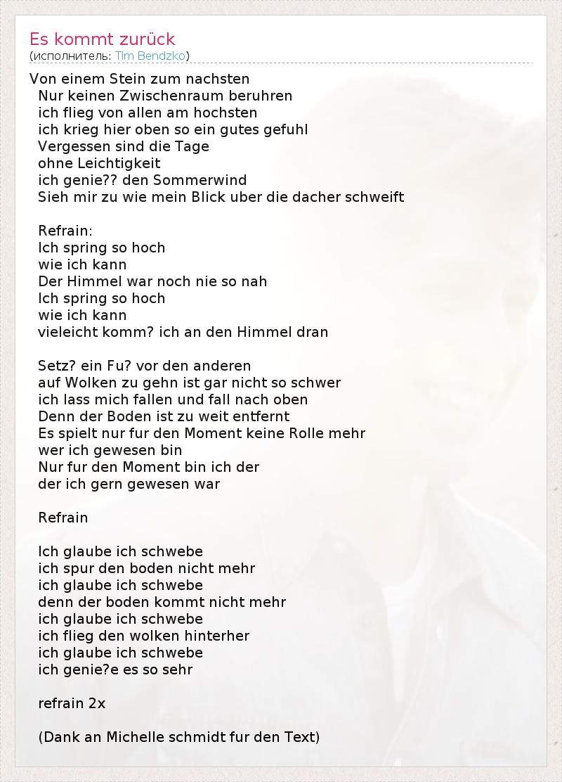 Это интересно:Тим Бенджко (Tim Bendzko; род. 9 апреля 1985 г., Берлин) — немецкий поп-исполнитель.17 июня 2011 г. вышел его дебютный альбом "Wenn Worte meine Sprache wären" ("Если бы слова были моим языком").