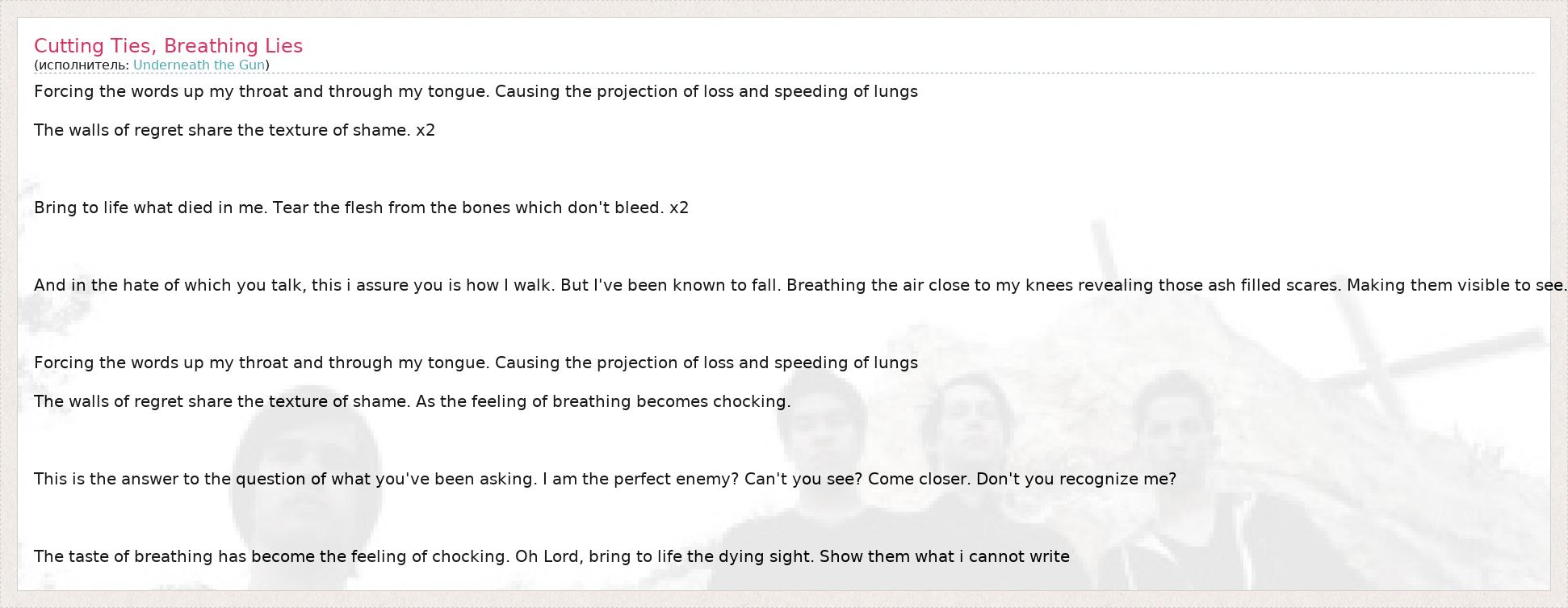 А как ты думаешь, о чем песня "Cutting Ties, Breathing Lies" ?