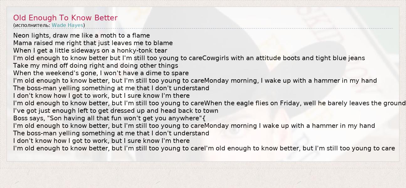 А как ты думаешь, о чем песня "Old Enough To Know Better" ?