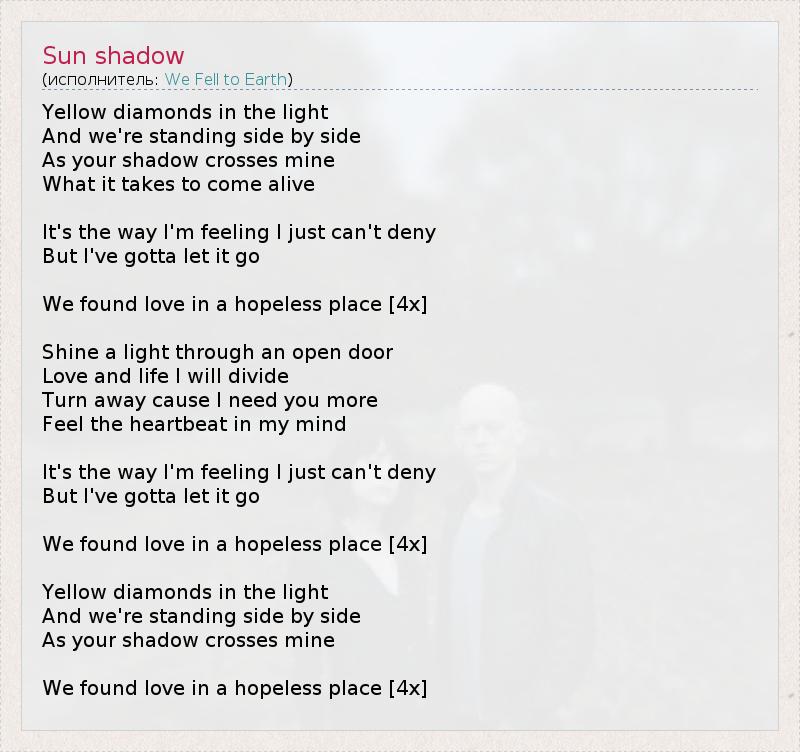 А как ты думаешь, о чем песня "Sun shadow" ?