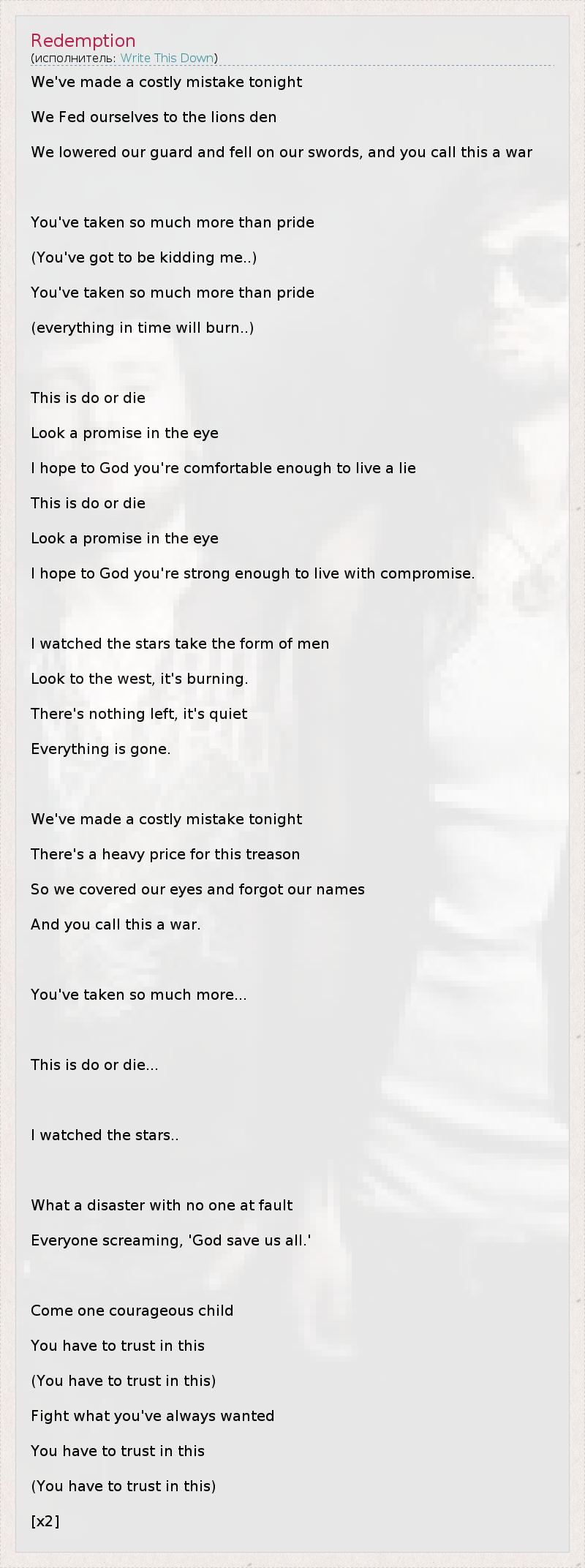 А как ты думаешь, о чем песня "Redemption" ?