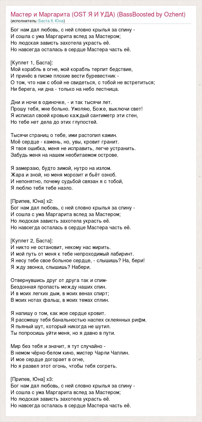 ГлавнаяИсполнителиБаста ft. ЮнаМастер и Маргарита (OST Я И УДА) (BassBoosted by Ozhent)
