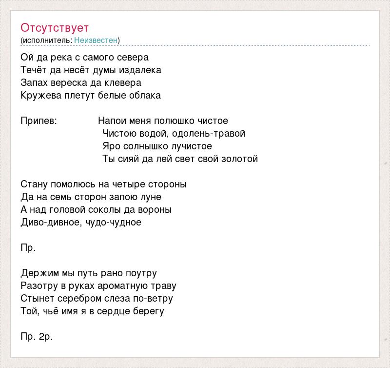 А как ты думаешь, о чем песня "Ой да река с самого севера" ?